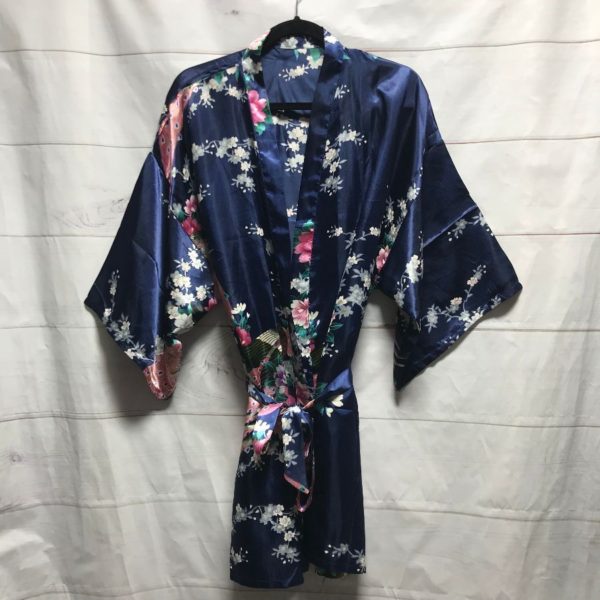 SILKY FLORAL PRINTED KIMONO STYLE ROBE CHERRY BLOSSOM PRINT
