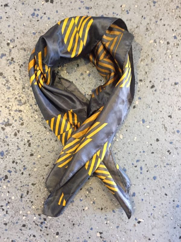 Rain Scarf scarf, silky, square shaped, water repellent, linear geometric design print, gray yellow