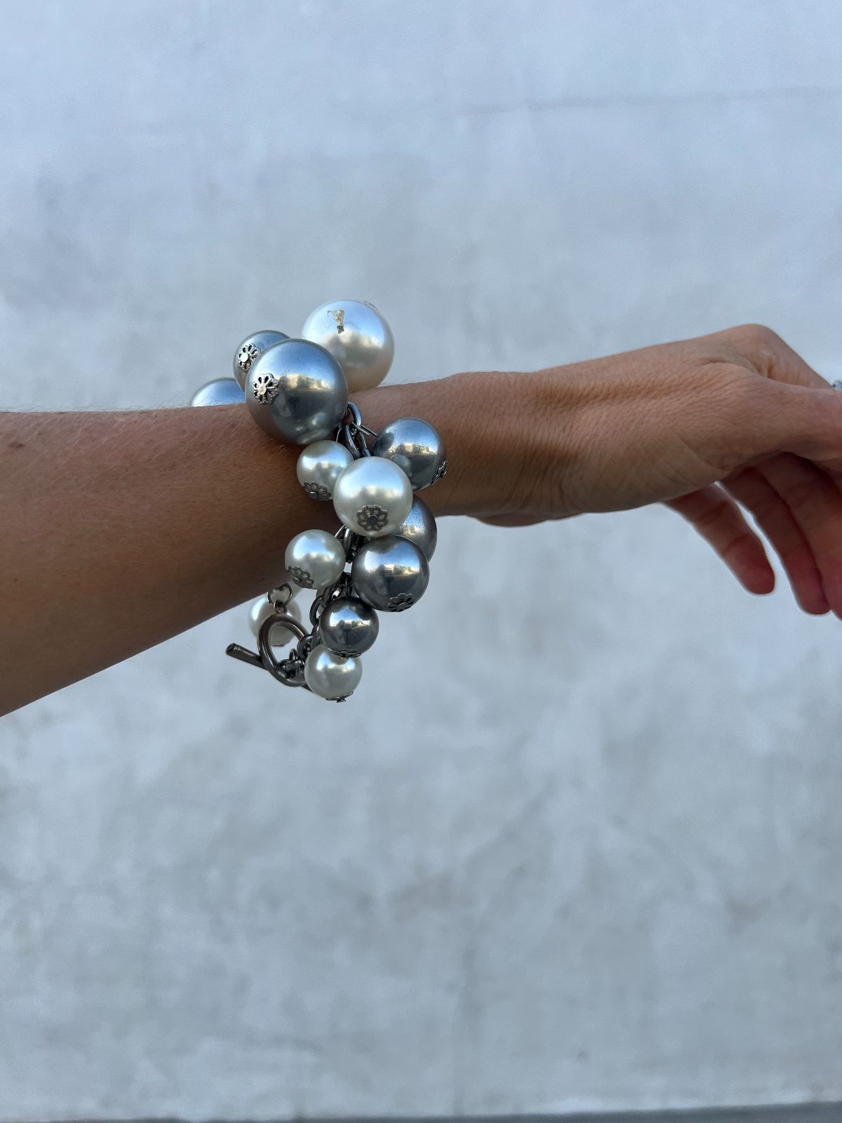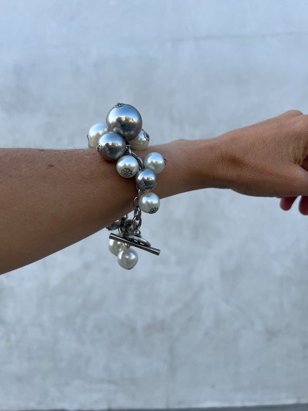 SILVER BAUBLE & PEARL CHAIN LINK BRACELET TOGGLE CLOSURE