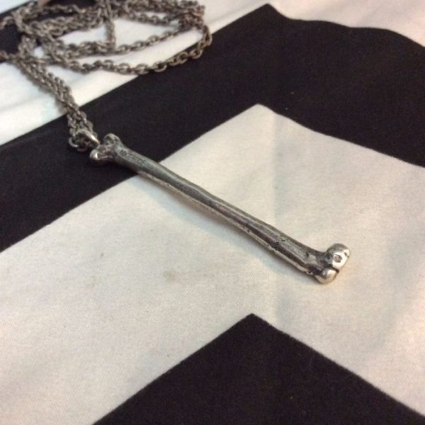 NECKLACE – SINGLE FEMUR BONE – LONG INDUSTRIAL CHAIN