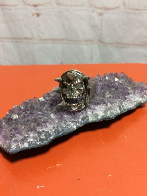 Ring, Skeletor, skull with spikes, silver metal, silver, size 9