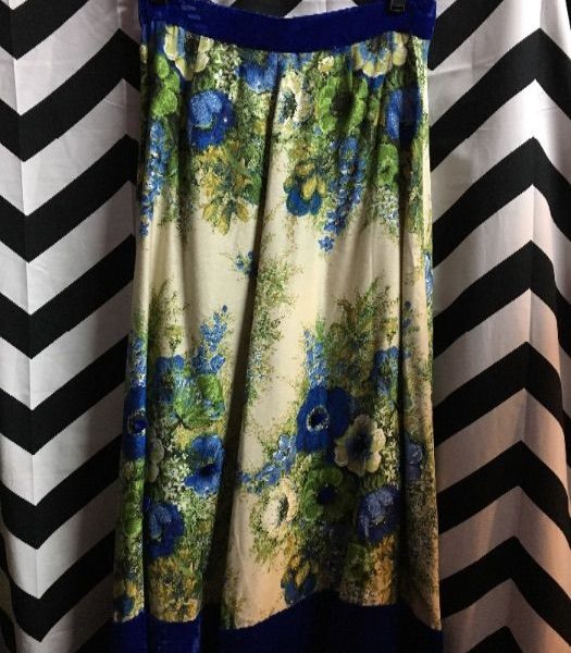 SKIRT – LONG W/PAINTED FLOWERS & VELVET TRIM