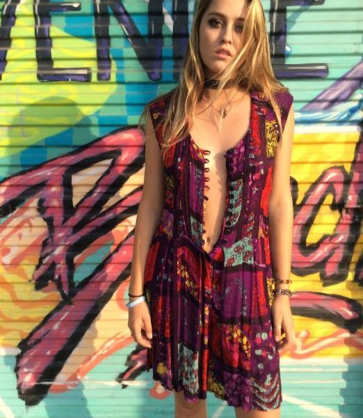 RAYON DRESS W/ PATTERNED HORIZONTAL STRIPES & MADE IN INDIA