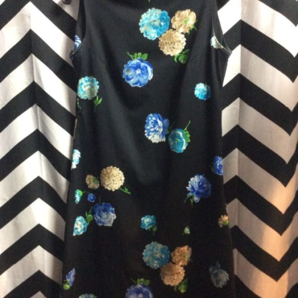 DRESS, SLEEVELESS, MINI, FLORAL PATTERN, BLACK/TAN/BLUE/GREEN, SIZE M