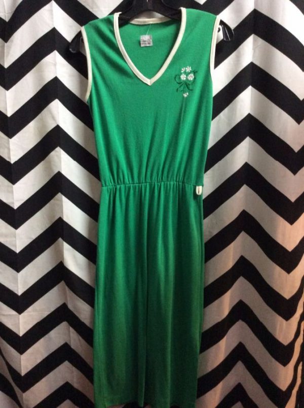 SLEEVELESS COTTON V-NECK DRESS W/EMBROIDERED DAISY