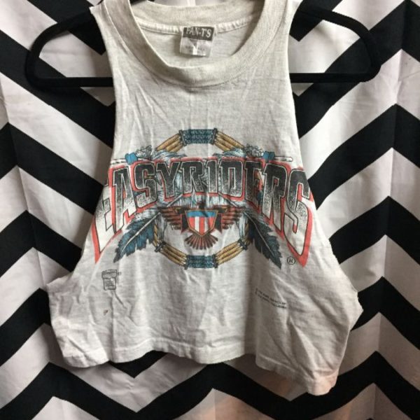 T-SHIRT W/CUTOUT SLEEVES SCREEN PRINTED EASYRIDERS DESIGN