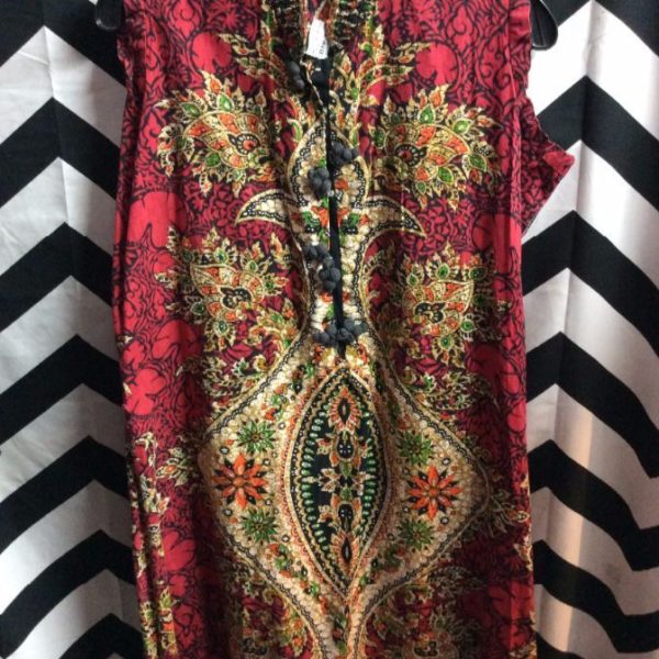 Dress, sleeveless, maxi length, Thai print, red/multi