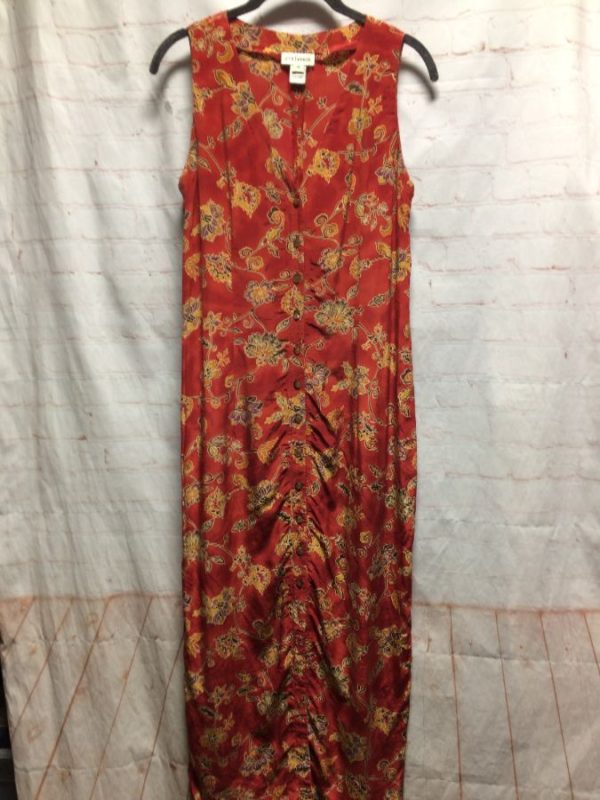 SLEEVELESS FLORAL DESIGN PRINT RAYON DRESS W/ BUTTON-UP FRONT