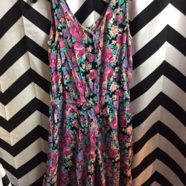 1990’S DRESS, SLEEVELESS, RAYON FLORAL PRINT