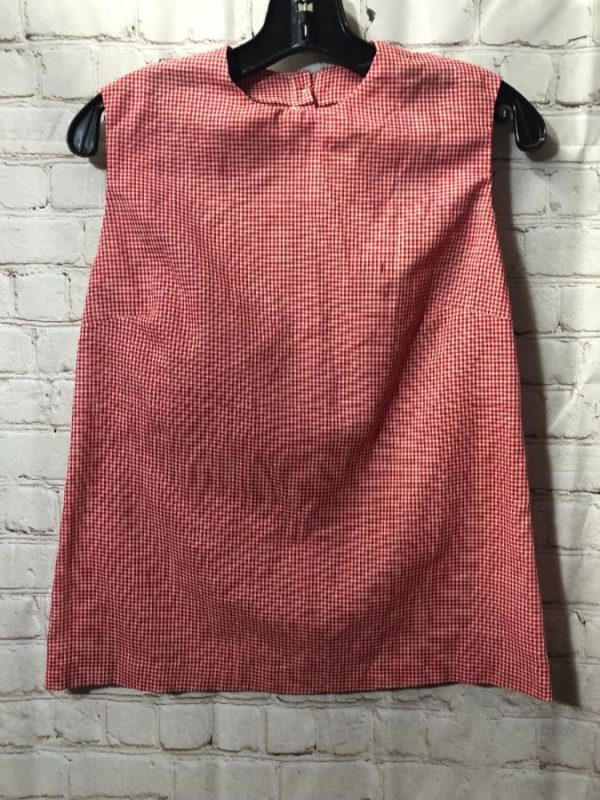 SHIRT, SLEEVELESS, BUTTON-UP, GINGHAM CHECK PRINT, RED/WHITE, SIZE S AS IS