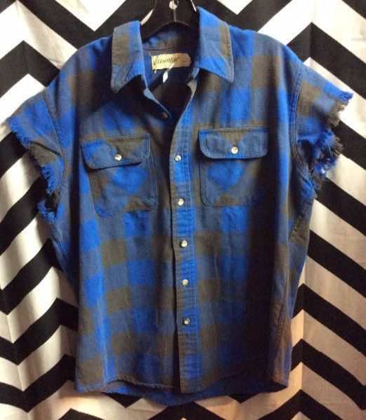 SLEEVELESS SS BD FLANNEL SHIRT RAGGED CUT