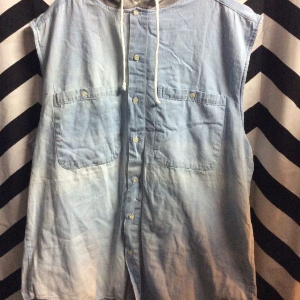 SLEEVELESS CHAMBRAY HOODED W/ 2 FRONT POCKETS
