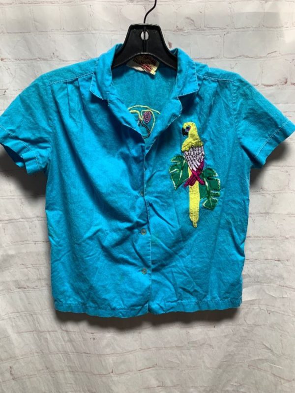 COTTON TOP W/ EMBROIDERED APPLIQUE PARROT DESIGNS IN FRONT & BACK
