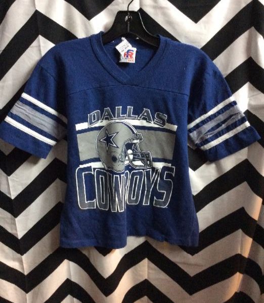 T-shirt, Dallas Cowboys, screen printed full front, stripes on sleeves, blue/gray/white, size XS small fit