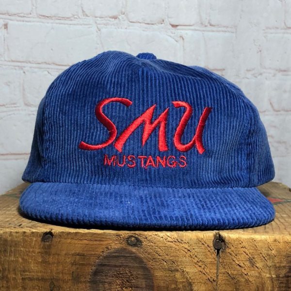 SMU MUSTANG EMBROIDERED CORDUROY ADJUSTABLE BACK TRUCKER CAP