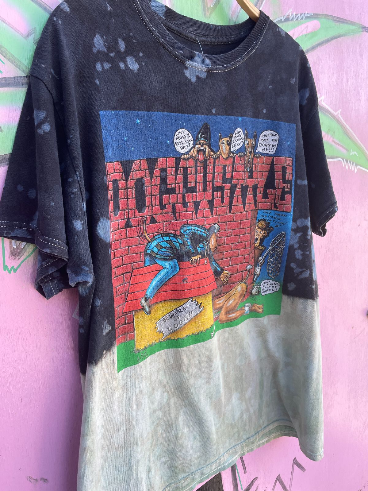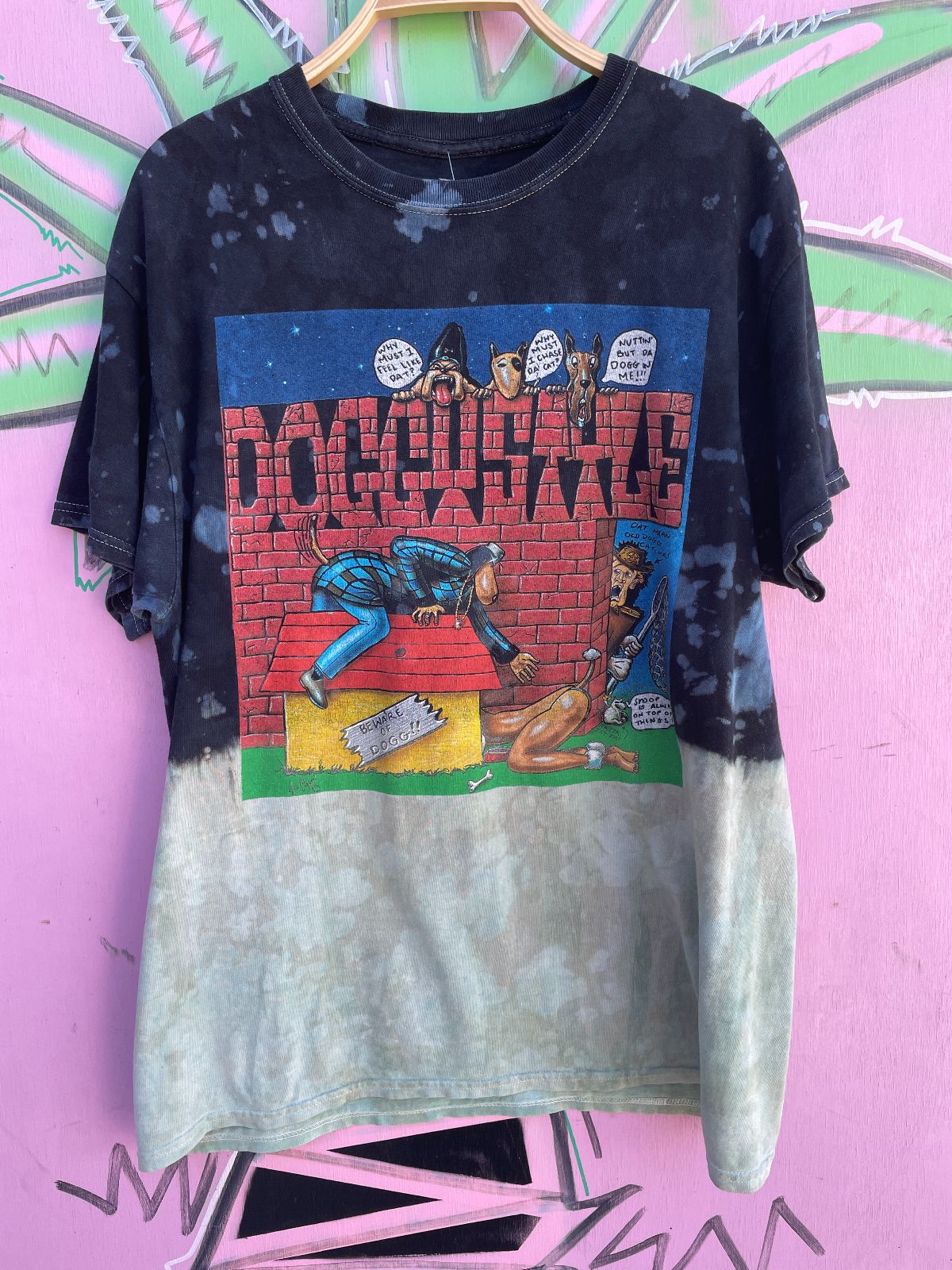 SNOOP DOG DOGGYSTYLE ALBUM COVER GRAPHIC T-SHIRT W/ BLEACH SPLIT DYE