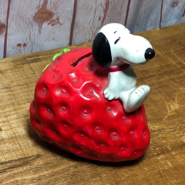 SNOOPY SITTING ON STRAWBERRY COIN BANK