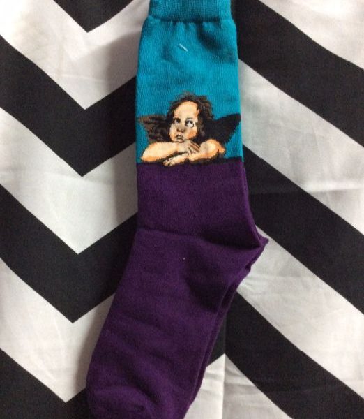 Socks, cherub angel design, blue/purple