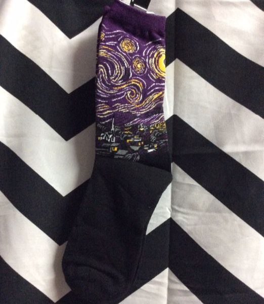 Socks, Starry Night by Van Gogh design, purple/yellow