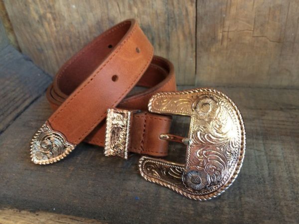 SOFT LEATHER BELT W/ WESTERN ORNATE BUCKLE