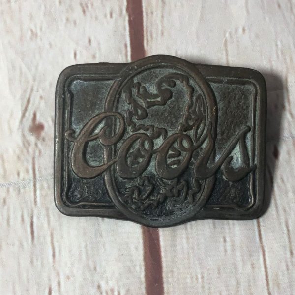 SOLID BRASS 1970S-80S COORS BELT BUCKLE W/ EMBOSSED TEXT