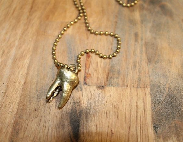 NECKLACE – MOLAR TOOTH CHARM – SOLID BRASS – MEDIUM WEIGHT BALL CHAIN
