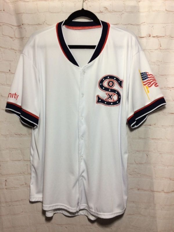 SOX BASEBALL JERSEY XFINITY & AMERICAN FLAG GRAPHICS ON SLEEVES