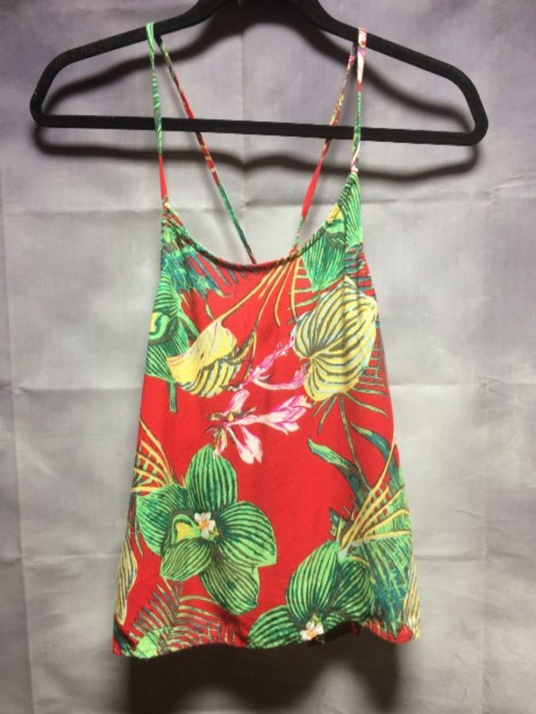 HAWAIIAN SPAGHETTI STRAP RAYON TOP GREEN YELLOW FLORAL PATTERN
