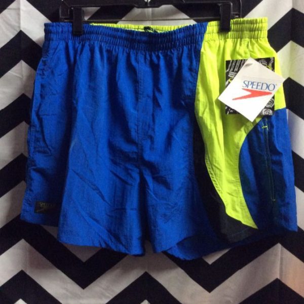 Speedo swim shorts, elastic waist, neon colors, deadstock, neon blue/neon green, size XL
