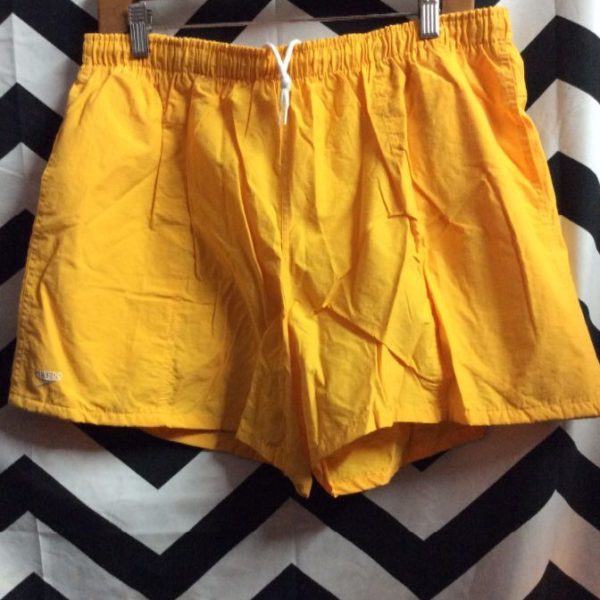 Retro Speedo swim shorts, elastic waist, solid color, deadstock, yellow gold, size XL