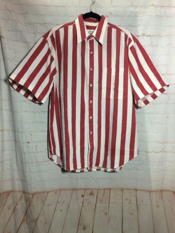 Se Jolie shirt, short sleeves, button-up, vertical striped print, red/white, size L