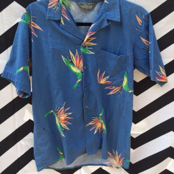 1980’S HAWAIIAN SHIRT, COTTON, BIRDS OF PARADISE PRINT