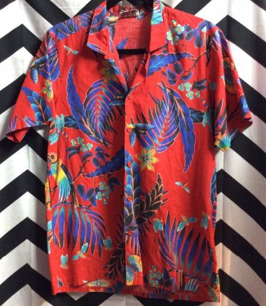 BRIGHT! 100% COTTON TROPICAL PARROT PRINT SHIRT