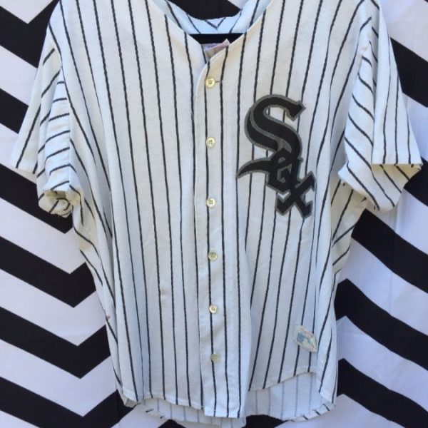 RAWLINGS BASEBALL JERSEY, COTTON, WHITE SOX, PINSTRIPED FABRIC