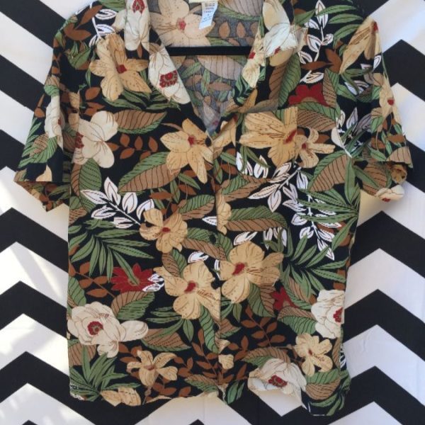 HAWAIIAN SHIRT, COTTON, TROPICAL FLORAL PRINT