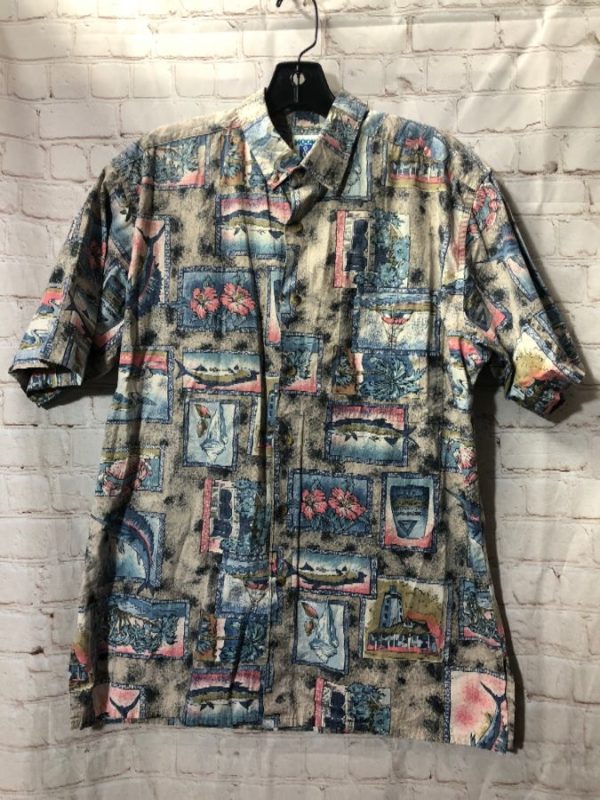 COTTON HAWAIIAN SHIRT W/ FISHING MARINE LIFE PRINT