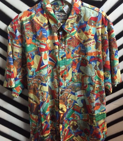 HAWAIIAN SHIRT W/COWBOYS & INDIANS PRINT
