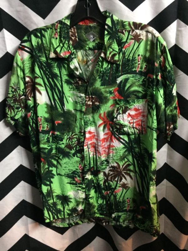 HAWAIIAN SHIRT RAYON W/ PALM TREE PRINT