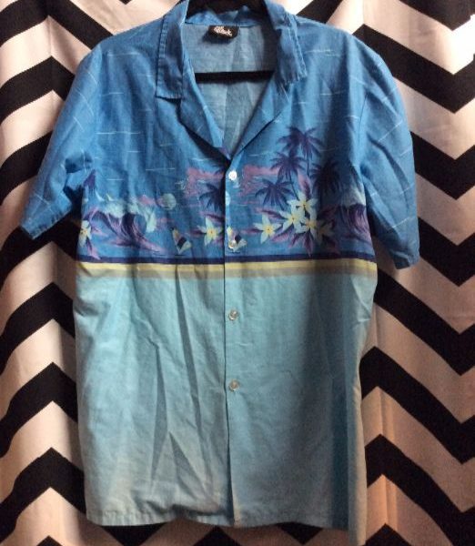 HAWAIIAN SHIRT – 2 TONED HORIZONTAL PATTERN W/FLORAL & PALM TREE DESIGN