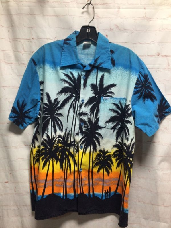 HAWAIIAN SHIRT COTTON W/ SUNSET & PALM TREES PRINT