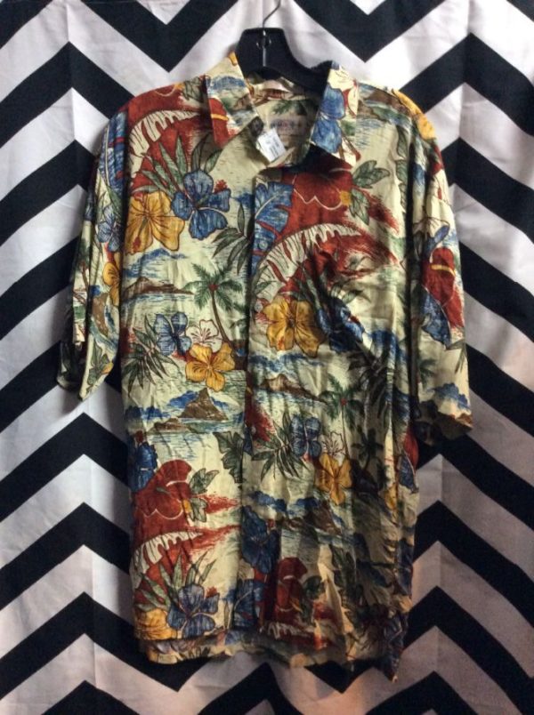 HAWAIIAN SHIRT RAYON W/ TROPICAL FLORAL PRINT
