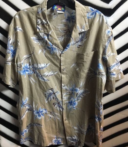 HAWAIIAN SHIRT, SHORT SLEEVE BUTTON-UP, SOFT FABRIC, TAN/BLUE, SIZE L
