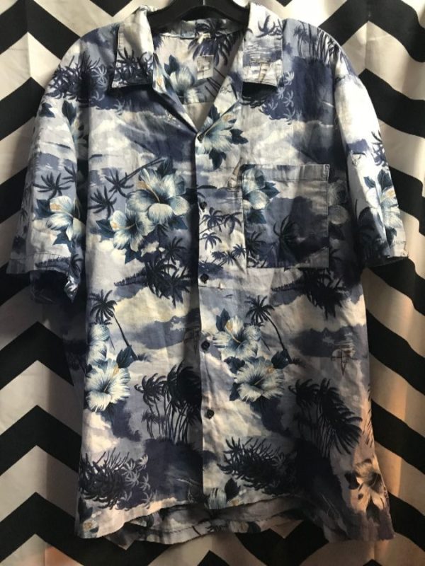 HAWAIIAN SHIRT W/ TROPICAL FLOWER & PALM TREE PRINT