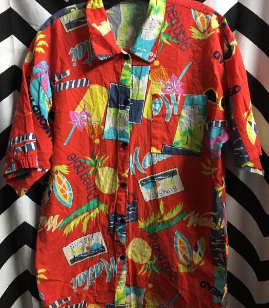 HAWAIIAN SHIRT – MAUI/SUNSET/PINEAPPLE GRAPHIC PRINT