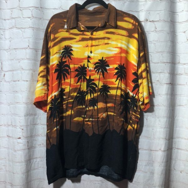 SS BD HAWAIIAN SHIRT WARM GRADIENT PALM TREE SUNSET WITH CLOUDS SILHOUETTE DESIGN RAYON AS-IS