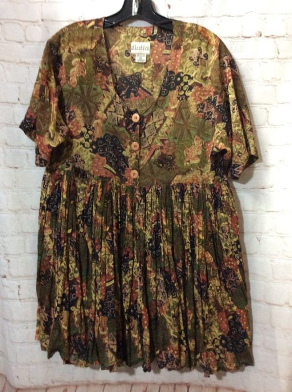 VINTAGE 1970S ORGANIC DESERT SANDS SCREEN PRINTED WRAP DRESS