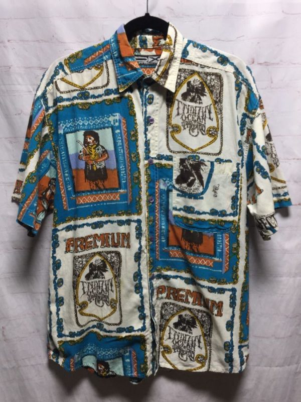 1990S ALLOVER TAHITI PRINT HAWAIIAN STYLE SHIRT