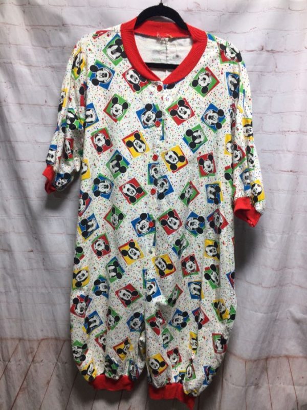 Pajama onesie, short sleeves, button-up, Mickey Mouse & polka dot design, red/white/blue/yellow/green, size one size fits all