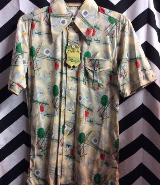 1970S EDEN HOUSE BROKEN NEEDLE GRAPHIC HALFWAY HOUSE POLYESTER JERSEY SHIRT