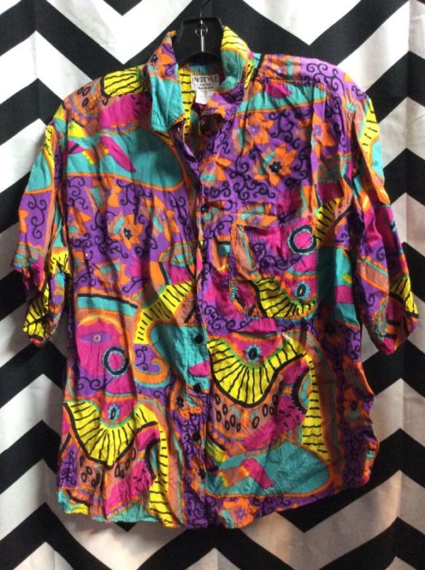 RAYON HAWAIIAN STYLE SHIRT W/ ABSTRACT PRINT